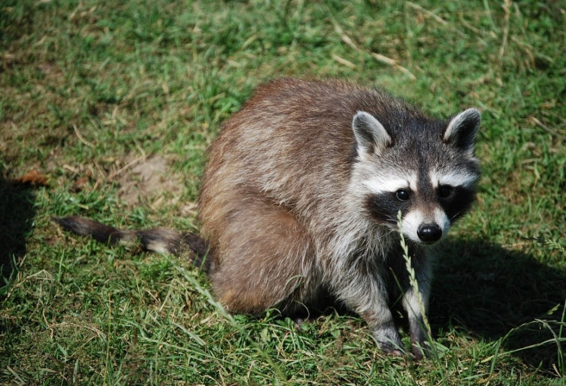 Waschbär im Jagdhausgarten auf Futtersuche